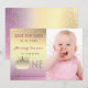Convite de Aniversário de 1 ano Salve a Data fofo, feminino e moderno, com foto personalizada da bebê.