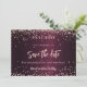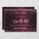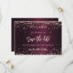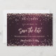Um moderno e elegante Salve a Data para uma 50ª festa de aniversário. Um fundo de gradiente arrojado. Decorado com rosa dourado confetti. Personalizar e adicionar data, local, nome e idade. Texto rosa dourado.