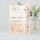 Anuncie uma celebração de marco com este elegante 80 floral. Salve o cartão de Data. Apresentando delicadas flores aquáticas e uma tipografia graciosa com script, é o prelúdio perfeito para um evento memorável. Personalize com o nome da honraria e os detalhes da festa para definir o tom de um encontro sofisticado. Aproveite!