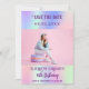 Um moderno e elegante Salve a Data para uma festa de aniversário (qualquer idade). Fundo holográfico, cor-de-rosa, verde-hortelã. Personalize e adicione uma foto, data e nome.