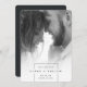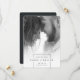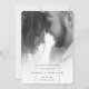 Um simples e elegante salvamento do design de data para casais modernos, com uma foto vertical esmaecendo para branco no fundo. Um elemento geométrico tem os seus nomes, a data do casamento e a localização em sans serif e itálico. Adicione detalhes adicionais à parte traseira.