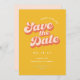Um cartão de salva data de casamento com uma foto personalizada e tipografia estilo retro cor de pêssego é uma maneira única e elegante de anunciar seu próximo casamento para amigos e familiares. A fonte vintage em tom de pêssego adiciona um toque de retro e capricho. Este design certamente irá impressionar e deixar todos ansiosos para o seu grande dia.