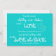 Reserve A Data Aqua Teal Love, Heart Photo Save the Date Card
