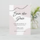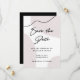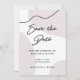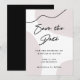 Os modernos cartões de salvar a data de casamento minimalistas apresentam um design de aquarela bege neutro e sofisticado em branco, com uma linha preta curva e abstrata para adicionar estilo. O verso do cartão é um preto rico que enfatiza a sutileza do bege. A caligrafia manuscrita moderna e atual completa este visual elegante.
