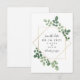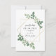 Um convite de r.s.v.p. de casamento elegante com um design de verde botânico inspirado em aquarela em torno de uma moldura geométrica com texto preto.
