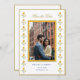 Cartão de Salve a Data amarelo e branco fofo com borda de calendula em aquarela com foto do casal.