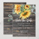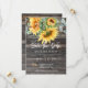 Este cartão de aviso de data de casamento apresenta impressão com textura de madeira com girassóis e eucalipto em aquarela. Caligrafia cursiva e fonte moderna são usadas.