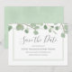 Convites modernos de eucalipto aquarela para salvar a data.