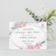 Quando seus planos mudam em relação à data do casamento, este cartão é uma boa escolha para informar aos convidados que a data mudou. Ele apresenta uma bela combinação de aquarelas delicadas e folhas e flores esboçadas. Formas geométricas modernas enquadram o design com sua colocação assimétrica. O verso do convite tem as iniciais dos noivos com um "e" comercial decorado com flores. As cores incluem tons de rosa, roxo, lavanda, pêssego, amarelo cremoso, azul-turquesa e verde. Se você já encomendou os convites de casamento antes da mudança de data, este cartão pode ser usado como um anexo aos convites para informar os convidados sobre a mudança de data. Você pode reformular o texto para se adequar às suas circunstâncias específicas.