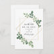 Um convite elegante da r.s.v.p. do casamento, com um design de verde botânico inspirado em aquarela em torno de um quadro geométrico com texto preto.