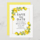 Cartão de Anúncio de Noivado Save The Date de Limões e Verde Aquarela Moderna com Quadro Dourado - Verso Amarelo