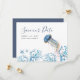 Anuncie seu noivado com meu Abaixo do Mar salve os convites de data com a opção Salvar nossa Data em um estilo de tipografia de script de tendência que evoca o aspecto da letra da mão. Esta simples carta apresenta uma réplica da minha mão original pintada de águas-vivas, peixe-estrela e coral-do-mar com seus nomes, data do casamento e local do casamento. Cartões inverter a cor azul complementar do marinho sólido. Perfeito para Casamentos de Código de Cabo Seaside, Praias de Nova Inglaterra Costeira, Flórida e casamentos de destino de Maryland. Para ver a suíte de casamento correspondente, visite DotellABelle no Zazzle.