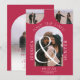 Fotos do moderno arco de barcos 4 casamento magenta rosa brilhante e branco, salvem a data. Um legal esquema simples e minimalista com uma vibração boêmica no deserto. Perfeito para casamentos casuais ao ar livre.