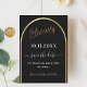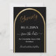 A Save the Date card for a 70 festa de aniversário. Um fundo preto, decorado com um arco de ouro falso. Personalize e adicione uma data e seu nome. O texto: Setenta e Salvar a Data é gravado com um script de estilo com letra de tendência grande.