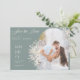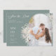 Elegante Salve a data com fotos arquivadas personalizadas, em um dueto de verde-sábio e amêndoa, para complementar seu tema de cor de casamento. Design de aquarela com arco de moenda, decorado com folhas e folhagem em tons de creme de amêndoa de trigo palomino. Design elegante, com estilo moderno e paleta natural suave de cores. Por favor, navegue na minha loja - coleção de direitos de folhagem - para itens correspondentes.