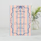 Casamento branco e colorido salve a data com uma doce harmonia de riscas azuis, poeirentas, um rabisco ondulado e um arco azul. Esta simples, mas romântica combinação de seu retrorreflector e a elegante caligrafia de script torna este convite realmente único e divertido.