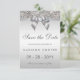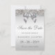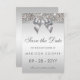 Cartões salve a data de prata personalizados elegantes com um lindo padrão de sequências prateadas impressas, um arco e fita prateados brilhantes e uma joia bonito de mistura de diamante impressa. Bonita, chique, moda, convites modernos. NOTA: Estes são gráficos impressos - sem arcos reais, sequências ou peças levantadas. O texto, a fonte e a cor da fonte podem ser personalizados. Se precisar de ajuda para personalizar seu produto, entre em contato comigo através da minha loja. Ficarei feliz em ajudar. Tenho produtos correspondentes na minha loja.