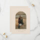 Um simples e elegante cartão de save the date de casamento bege, projetado com um arco no meio e letras em script no verso. Personalize com os detalhes do seu casamento futuro na frente e no verso do cartão.