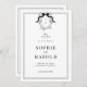 Apresente o seu casamento em estilo com este Arco francês da Crest Coquette Monograma QR Code Wedding Invitation. Apresentando uma foto eterno em preto e branco, um elegante monograma de fita e um código QR para o seu site de casamento, esta design combina o encanto de vintage com a conveniência moderna. A sofisticada crista francesa e o arco coqueteiro tornam-no perfeito para uma celebração chique e elegante!
