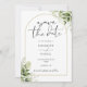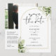 Este convite elegante de save the date com arco de folhagem botânica e detalhes dourados pode ser personalizado com suas informações em tipografia sofisticada com sua foto especial e código QR do site de casamento e detalhes no verso. Projetado por Thisisnotme