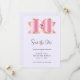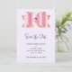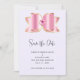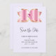 Salve a placa de data com um arco brilhante brilhante brilhante com contorno de ouro e uma pedra-pomes rosa facetada no centro. Glama de luxo feminina.