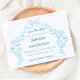 Prepare-se para vomitar seus convidados com nosso legante Blue Floral Salve o Cartão de Data! Este design espetacular apresenta sotaques florais azuis delicados e um charmoso motivo de arco, perfeito para dar um tom romântico para o seu dia especial. A paleta de cores azul e branca clássica adiciona um toque de elegância do eterno, fazer ideal para qualquer tema de casamento. Facilmente personalizável com seus detalhes, este cartão é impresso em estoque de cartão de alta qualidade para uma sensação luxuosa. Faça uma impressão duradoura com esta linda e chic, salve o cartão de data!
