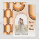 Surpreenda seus convidados com este cartão de Save the Date retrô e descolado, com arco-íris boho, foto arredondada e tipografia dos anos 70. Adicione facilmente seus detalhes clicando na opção "personalizar este modelo".