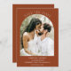 Desfrute deste Monograma de Casamento Moderno em Terracota Laranja Queimada. Monograma de Casamento com uma Foto Boho Por favor, salve a data. Basta alterar os detalhes para atender às suas necessidades.