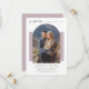 Um chic e moderno 'salve a data' apresentando uma moldura de foto em arco curvado contra um bloco de cor roxa quente, com tipografia mista elegante e serifada abaixo em um fundo branco limpo. O verso roxo coordenado adiciona um toque final sofisticado e coeso. A paleta de rosa suave cria uma estética romântica e editorial perfeita para casamentos de outono, jardim ou boho-chic. Todo o texto e foto são totalmente personalizáveis.