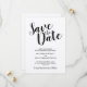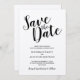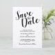 Manuscrito moderno Kraft Paper Casamento Salve a Ficha de Datas com título na fonte preta do roteiro moderno com detalhes de casamento na fonte preta do serif moderno em papel kraft.