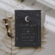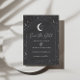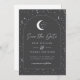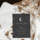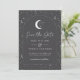 Um tema de lua celeste e estrela salve o cartão de data com um fundo de cinza de carvão e texto branco com elementos. Personalize a cor do padrão estelar, fundo, preenchimento de arco e elemento lua!