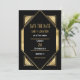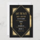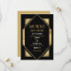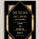 Art Deco Dourado Código QR Preto Casamento Salve A Data. Voltando aos gloriosos anos 20, era glamour com este design de ouro e arte negra. Personalize facilmente o texto para seus detalhes. Adicione um código QR ao seu site de casamento no verso.