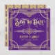 Reserve A Data Art Deco Weding Elegante Dourado Excelente Roxo Ga