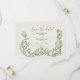Não espere. Envie seu convite de casamento agora. Torne-o inesquecível com esta opção Salve o cartão de data com flores de art nouveau sobre fundo escuro. Convide todos os seus hóspedes em estilo com este espantoso cartão 'Salve a data' com flores Bonito art nouveau. A placa apresenta um script elegante e grande, dizendo Salvar a data. O quadro botânico do estilo retro bonito art nouveau vai se adequar ao seu casamento ou festas ao ar livre e agradar a qualquer amante de plantas caseiras. Você pode mudar os nomes e quaisquer outras informações, como a localização e as datas, e adicionar seus próprios detalhes de casamento ou mensagem pessoal na parte traseira do cartão. Mockup por freepix de rawpixel