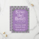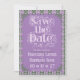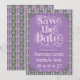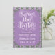 An elaborately detailed Art Nouveau Save the Date featuring a purple thistle scroll and vine striped pattern on a light purple background. A pairing of elegant fonts has been carefully selected to accompany the decorative floral announcement text, however, they can be changed to meet your needs. You can also change their colors, as well as the color of the announcement text.