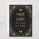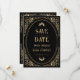 Um casamento moderno e chic salvará a data com as falsas bordas de arte dourada e fontes vintage.