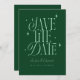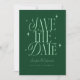 Elegante e caprichoso, salve o cartão de data com fonte boho que diz "salve a data" com estrelas em um fundo verde esmeralda. Você pode adicionar uma foto atrás.