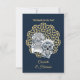 Convites de casamento "Até que a Morte Nos Separe" elegantes e divertidos em tons de azul naval, dourado e branco com noivos crânios açucarados inspirados em designs de tatuagem. Ideais para quem procura algo diferente ou para um casamento com tema de Halloween, com texto editável, fácil de personalizar com detalhes pessoais.