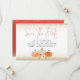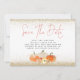 Autumn Pumpkins Dourado Casamento de Código QR Glitter. Florais e abóboras nas cores das laranjas do outono, terracottas e cremes, com um toque de cintilação falsa de ouro, além de bordas reluzentes de ouro no topo e no fundo. Com um script moderno definido para Salvar a Data e o resto do texto que você pode personalizar facilmente com seus detalhes. Adicione seu código QR ao seu site de casamento na parte traseira ou exclua este e o texto na parte traseira, se não for necessário.