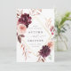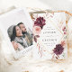 Este elegante casamento, que salva a data do convite, apresenta uma flor de aquarela de dahlias, rosas de jardim, e peônia em vermelho de burgundy, marrom, cor-de-rosa pincelada sobre as folhas do outono, com uma foto no verso. Para uma personalização mais avançada deste design, clique no BOTÃO FERRAMENTA DESIGN AZUL. Itens correspondentes também estão disponíveis.