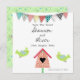 Aves Brancas E Casas De Aves, Cujas Belas Aves Guardam A Data Para Casamento Ou Noivado. Múltiplas cores, no topo, com pássaros doces verdes voando em direção a uma casa de pássaros com entrada em forma de coração. Padrão verde atrás com pequenos corações azuis e uma moldura de rabisco. Nomes do casal também nas costas. Design simples e limpo, excelente para amantes do Boho e do Chique! Facilmente personalizável para você adicionar seus próprios detalhes.
