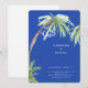 Casamento Salve a Data. Azul Cobalto. Tropical. Folhagem. Fonte moderna. Design moderno. Cantos arredondados.