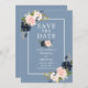 Anúncio de casamento do Noivado Floral Azul Dusty Elegante Cor d'água cor azul Dusty Cor-de-rosa Salva O Cartão-postal inclui rosas cor-de-rosa, rosas azuis poeirentos e verde num quadro branco.