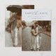 Azul | Simples Cartões salve a data De Foto De Casamento Floral De Caligrafia. Apresentando uma tipografia caligráfica moderna com sua foto e elementos florais minimalistas se misturando em um fundo azul suave e poeirento. Perfeito para casamentos tradicionais com um talento moderno!