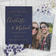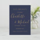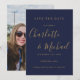 Com nomes em estilo de assinatura, este cartão de save-the-date azul marinho e dourado pode ser personalizado com as informações do seu dia especial de casamento em tipografia elegante e sua foto especial no verso. Concebido por Thisisnotme©