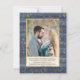 Este design com ilustração de rosas de efeito de ouro e azul marinho de cor d'água e estrutura geométrica de tom dourado. No topo direito - confetti de efeito do ouro. E no verso - sua foto e informações que você pode querer adicionar. Diga aos seus amigos e familiares que você daria as boas-vindas aos presentes no seu dia especial.