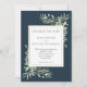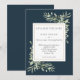 Com delicadas folhas de aquarela em um fundo azul marinho profundo. Este cartão de Alteração de Data chic pode ser personalizado com os detalhes atualizados do seu casamento. Projetado por Thisisnotme©