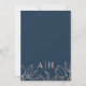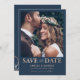 Ponha os planos de casamento em andamento com este moderno cartão de data, projetado para fazer uma primeira impressão impressionante. A frente apresenta sua foto favorita ao lado de uma impressionante tipografia rosa metálica "Save the Date" (Salvar a data) em um sofisticado fundo azul escuro, criando um contraste na moda. Ao contrário, você encontrará espaço para um monograma personalizado, maravilhosamente enquadrado pela delicada folhagem de rosa de ouro falso para um toque adicional de elegância. Perfeito para casais que querem misturar estilo contemporâneo com charme de eterno, este cartão anuncia seu grande dia de uma forma refinada e memorável.
