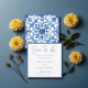 Cartão de "Save the date" estilo Costa Amalfitana da Itália, com azulejos azuis e brancos, perfeito para um casamento.