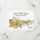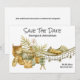Uma bela ilustração de confortável casa e ilha com confortáveis amenidades, apresentando uma rede com confortáveis almofadas e travesseiros xadrez pendurados atrás de cestas de vime; vasos de plantas de cerâmica; almofadas marrons e verdes e folhas e folhagens secas de plantas. Este design moderno e atraente é ideal para celebrações de casamento de verão, primavera, outono, boêmio, campestre, ao ar livre, floresta e bosque. Personalize o texto e adicione detalhes extras no verso, se necessário.